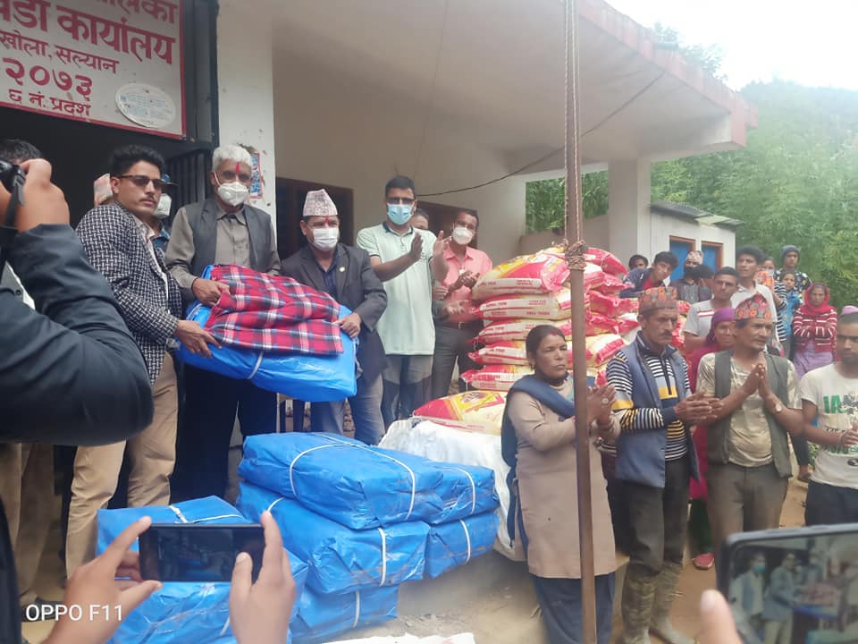 मन्त्री ज्वालाद्धारा बाफुखोलाका बाढीपहिरो पिडित परिवारलाई राहत सामाग्री हस्तान्तरण